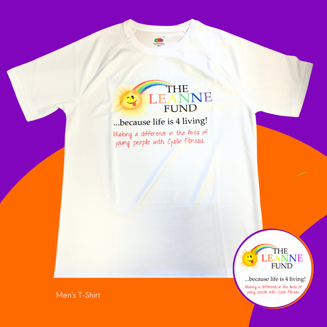Leanne Fund white sports t-shirt with full colour logo